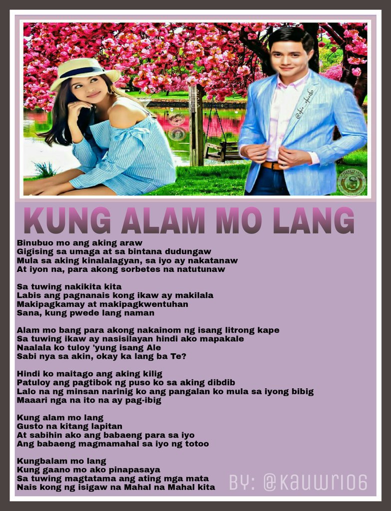 Alam ko lang sana in english. Kung alam ko lang na muli kang magbabalik tiniis ko na kahit na mainip handa kong maghintay makasama lang kita lahat gagawin ikaw sana ngayon ang syang kasama ko aking kahawak kamay at yakap-yakap ko. Nasaktan ako kasi alam kong nasasaktan ka. Balak ko nang magtapat kaso naunahan na nya ako.